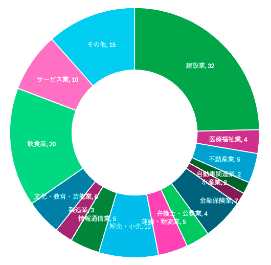 | 製造業 | 文化・教育・芸能業 | 飲食業 | サービス業 | その他 |