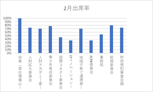 | 人財拡大委員会 | 11 | 8 | 73% | |||||||||||||||