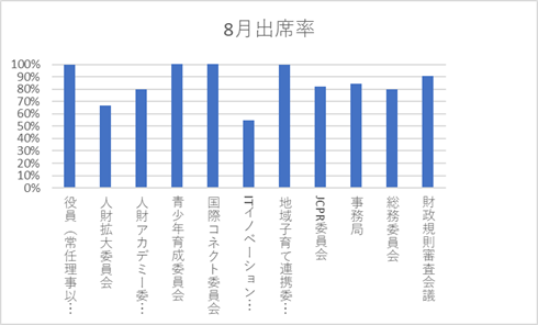 | 8月 | 対象者 | 参加人数 | 出席率 | |||||||||||||||