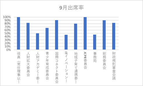 | 9月 | 対象者 | 参加人数 | 出席率 | |||||||||||||||